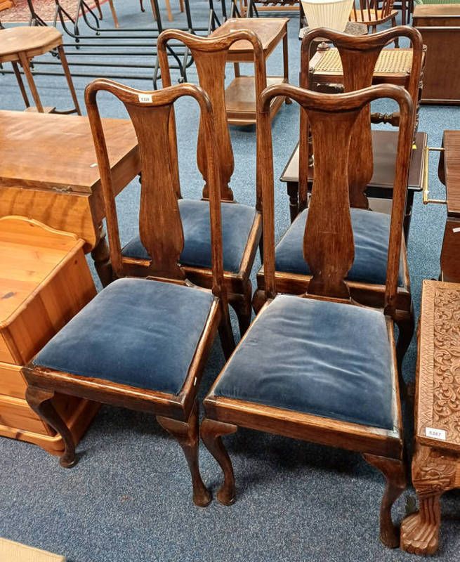 Set of 4 early 20th century oak dining chairs on queen anne supports