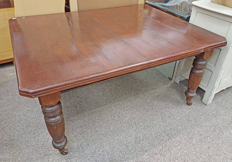 19th century mahogany extending dining table on reeded supports - no leaf. 150 cm long
