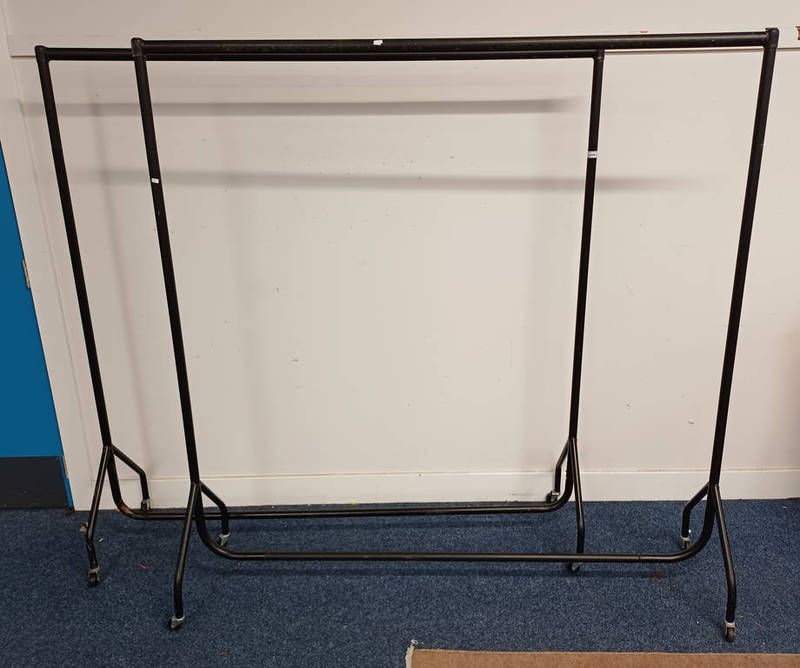 2 leather suitcases & 2 other cases, 2 metal clothes rails etc