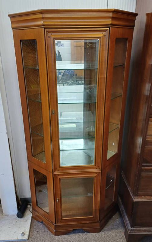 Hardwood display cabinet with glazed panel door over glazed panel door - 188 cm tall