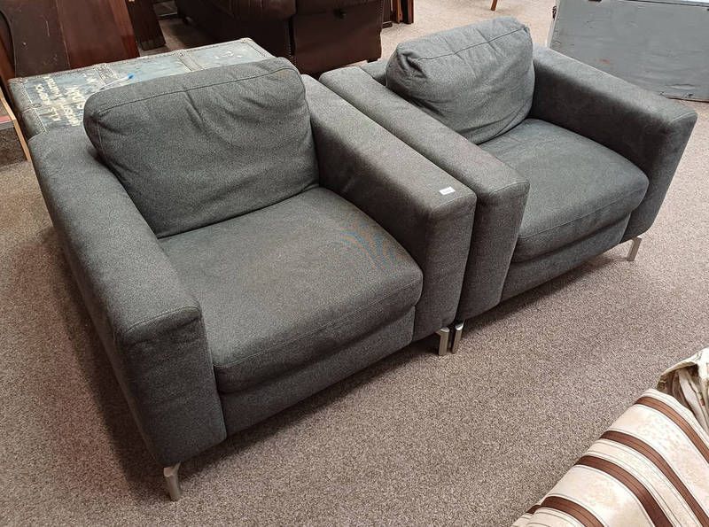 Grey leatherette reclining 2 piece living room suite - settee & armchair