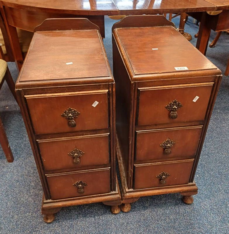 Pair of 20th century 3 drawer bedside chest on short queen anne supports