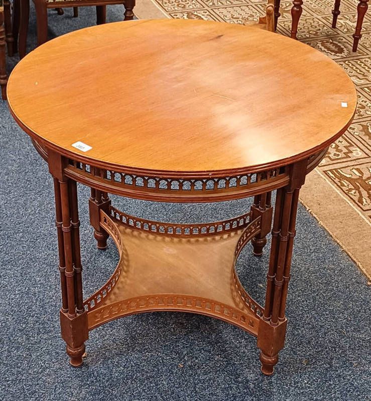 20th century mahogany circular table with decorative fretwork & x understretcher - diameter 79 cm