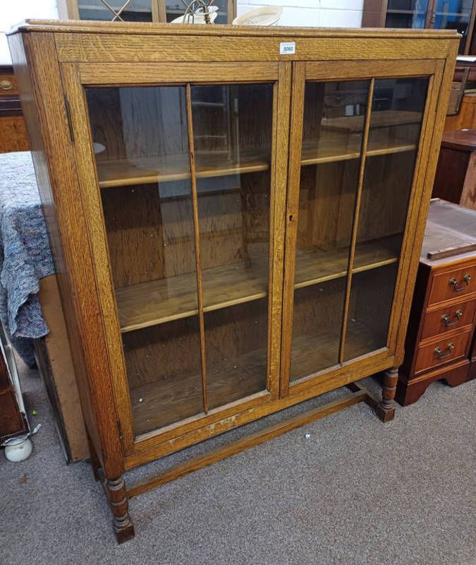 Early 20th century oak bookcase with 2 glazed panel doors on turned supports - 130 cm x 106 cm wide
