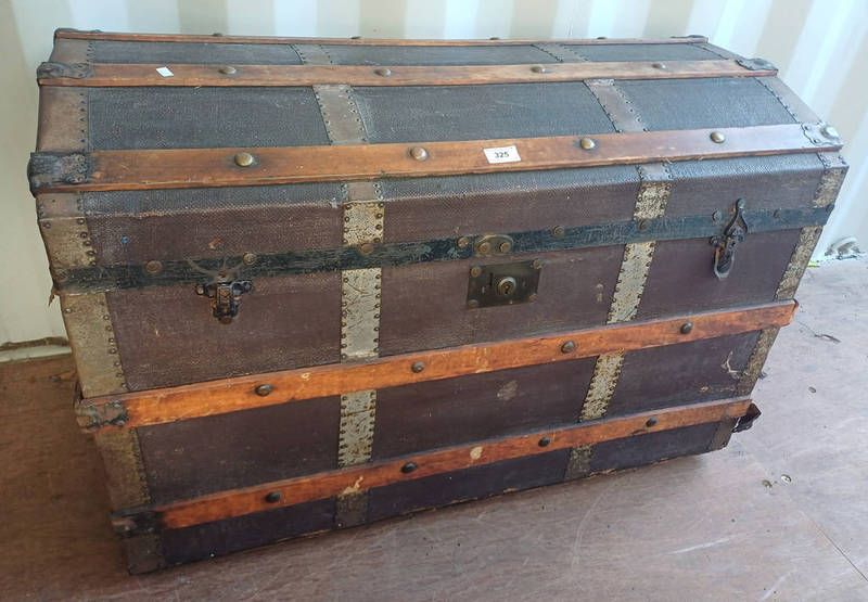 Wood bound dome top trunk with metal fittings - 62 cm tall x 92 cm wide