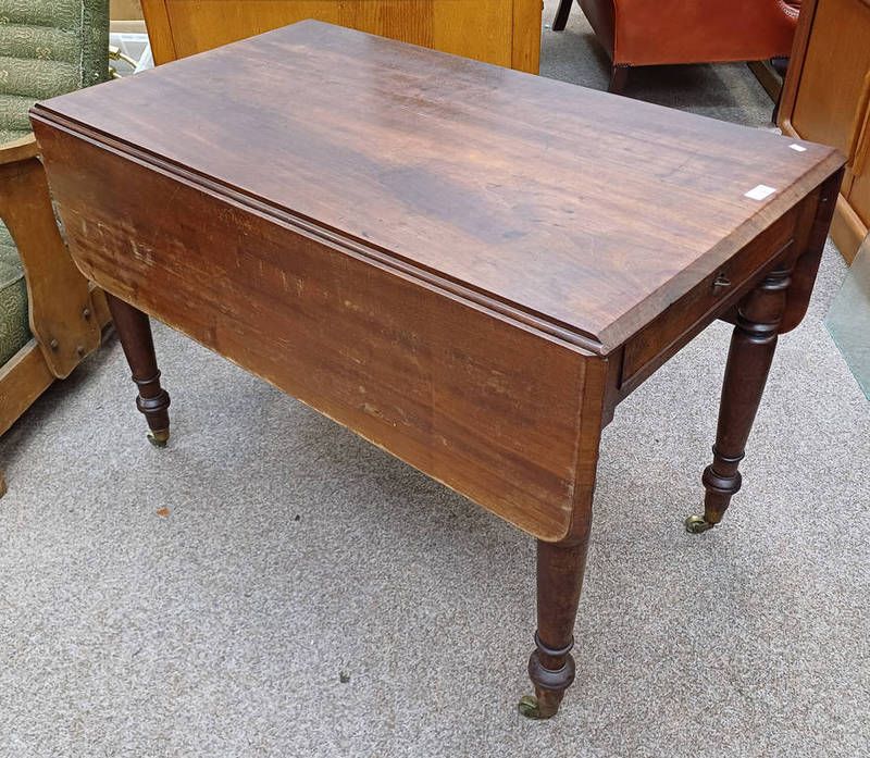 Late 19th century mahogany pembroke table with single drawer on turned supports - 106 cm long