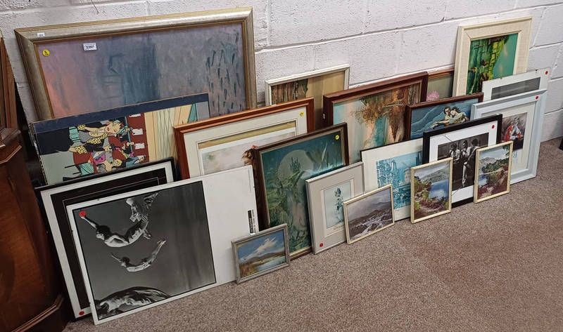 Excellent selection of framed pictures to include ballet themed prints, highland scenes, etc