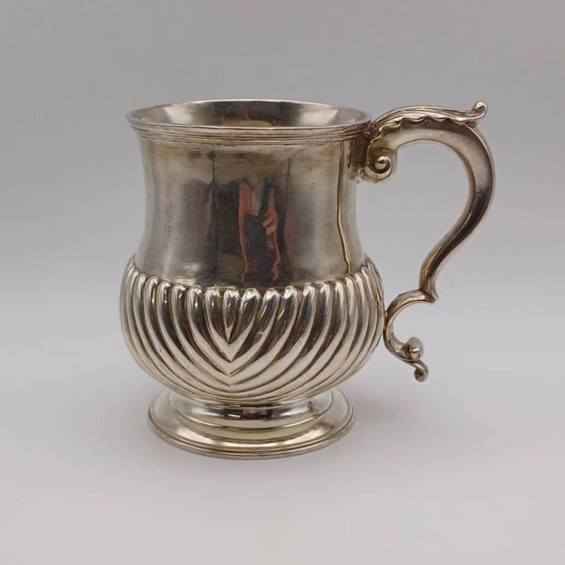 A william iv silver mug with fluted decoration & scroll handle by john, henry & charles lias, london 1831, 10cm tall, 224g