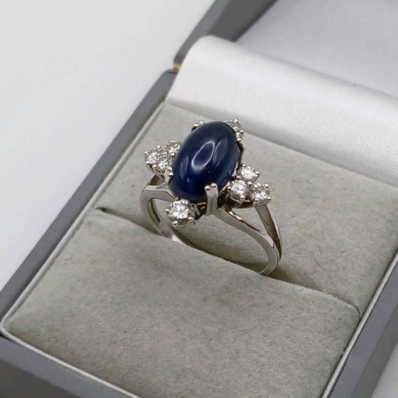 18ct gold sapphire & diamond ring, the burmese star cabochon sapphire set between brilliant cut diamonds, the sapphire approx 4.50 carats showing no indications of heat treatment - ring size k 1/2 with gcs gem certificate