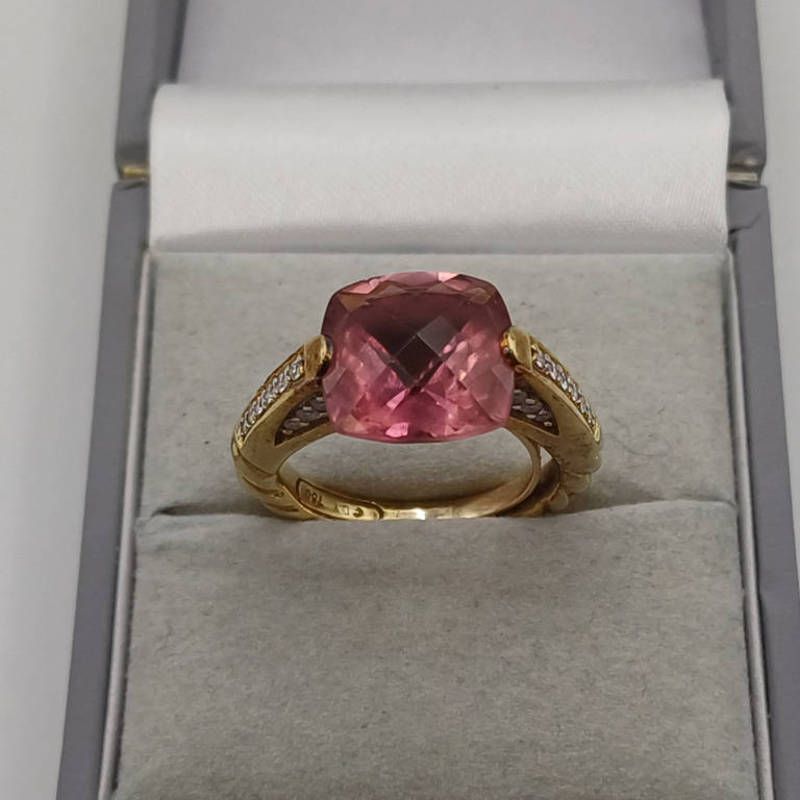 David yurman 18ct gold pink tourmaline & diamond set ring, the tourmaline very approx 4.5 carats -- ring size h with sizing band, 8.4 g