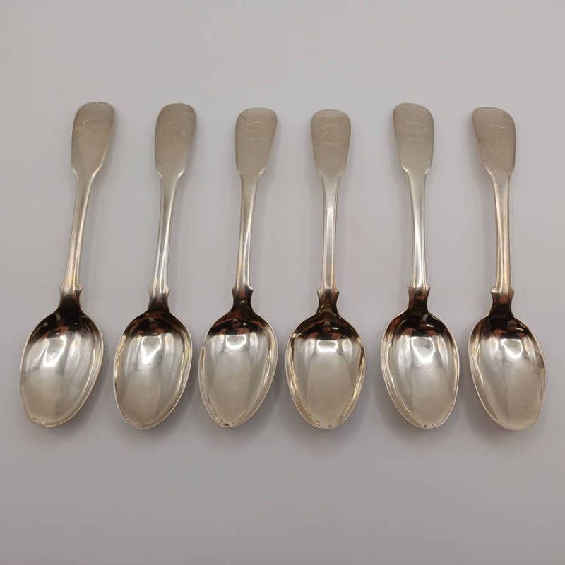 A set of 6 george iii scottish silver fiddle pattern teaspoons by j w howden & co & alexander henderson, edinburgh 1817. 93g
