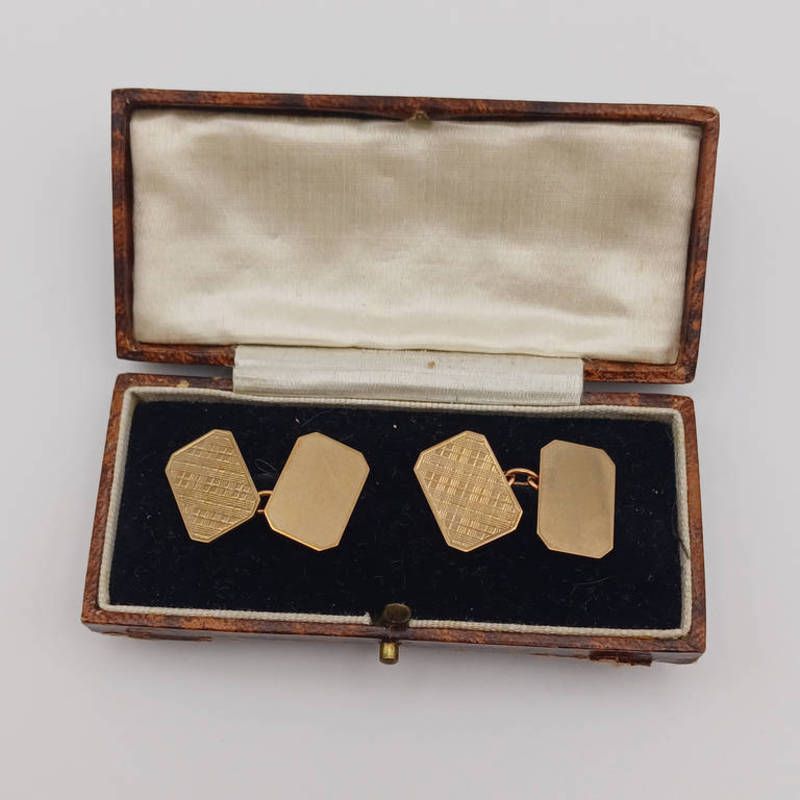 Pair of 9ct gold cufflinks with chequered design - 6.3g