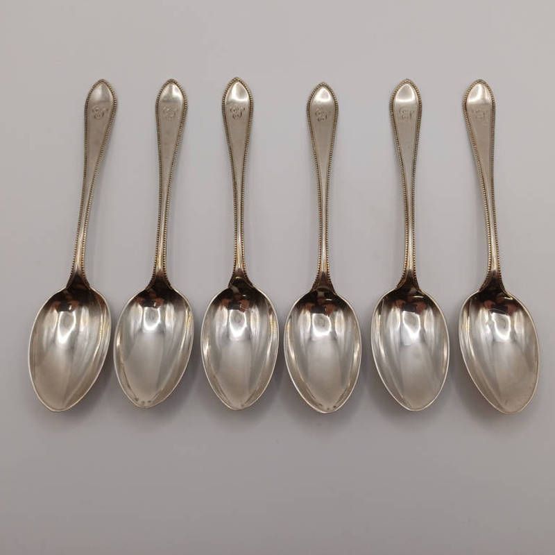 A set of 6 victorian scottish silver teaspoons with beaded handles by robert tennant & co. glasgow 1889. 96g