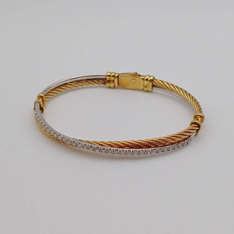 David yurman 18ct yellow & white gold diamond bangle - 16.8g, inner width 5.8 cm