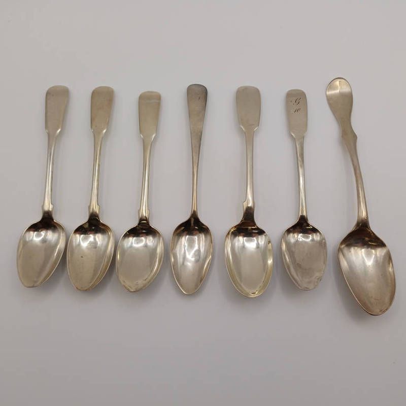 7 georgian scottish silver teaspoons to include a pair by james mckay. edinburgh 1816. 124 g