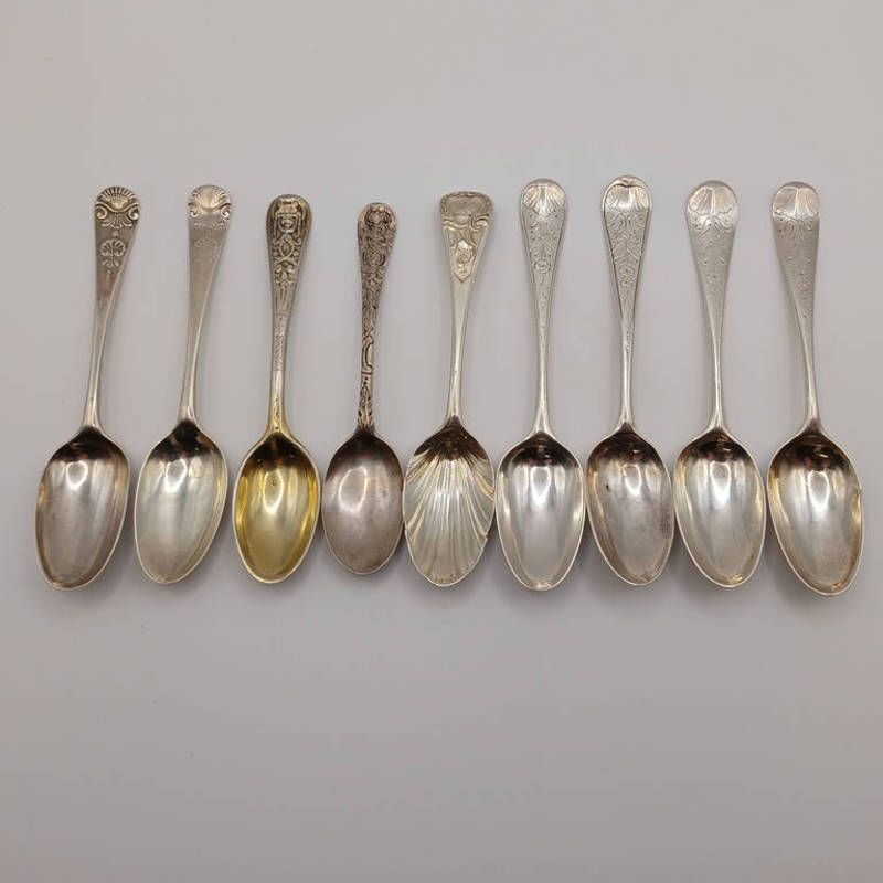 Set of 9 various georgian silver teaspoons from various dates & makers, 130g