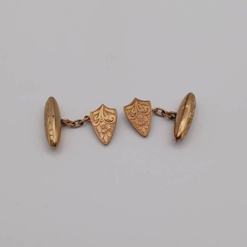 Pair 9ct gold cufflinks with shield & baton terminal - 3.1 g