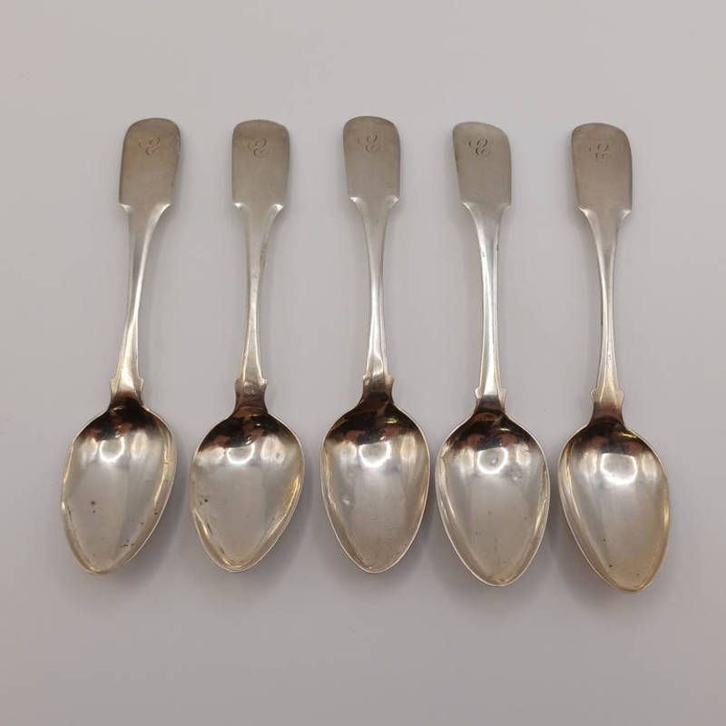 A set of 5 scottish provincial silver fiddle pattern teaspoons by peter ross, aberdeen circa 1819-1822. 50 g