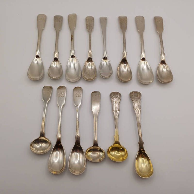 A selection of scottish silver salt & condiment spoons. all edinburgh from various makers & dates. 216 g