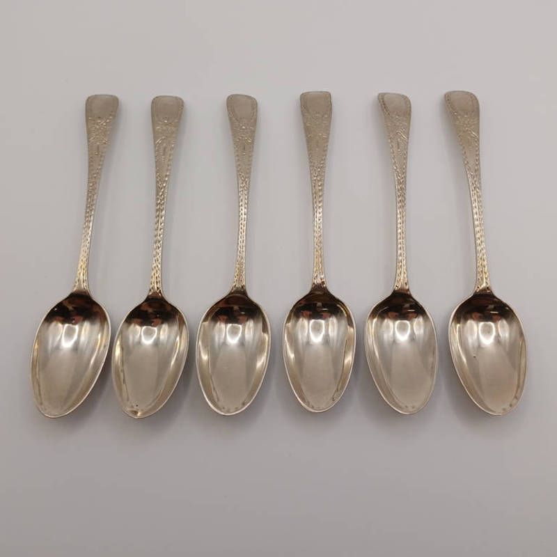 A set of 6 george iii silver bright cut teaspoons by hester bateman, london 1786. 100g