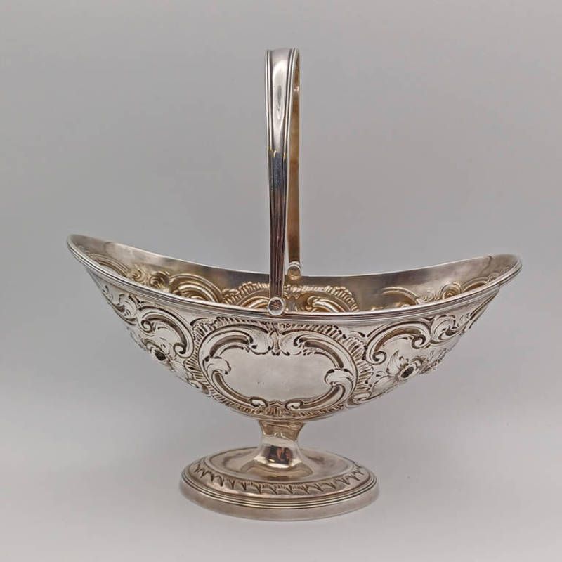 A victorian silver swing-handled basket with embossed foliate decoration by henry william curry, london 1874, 18cm tall, 200g