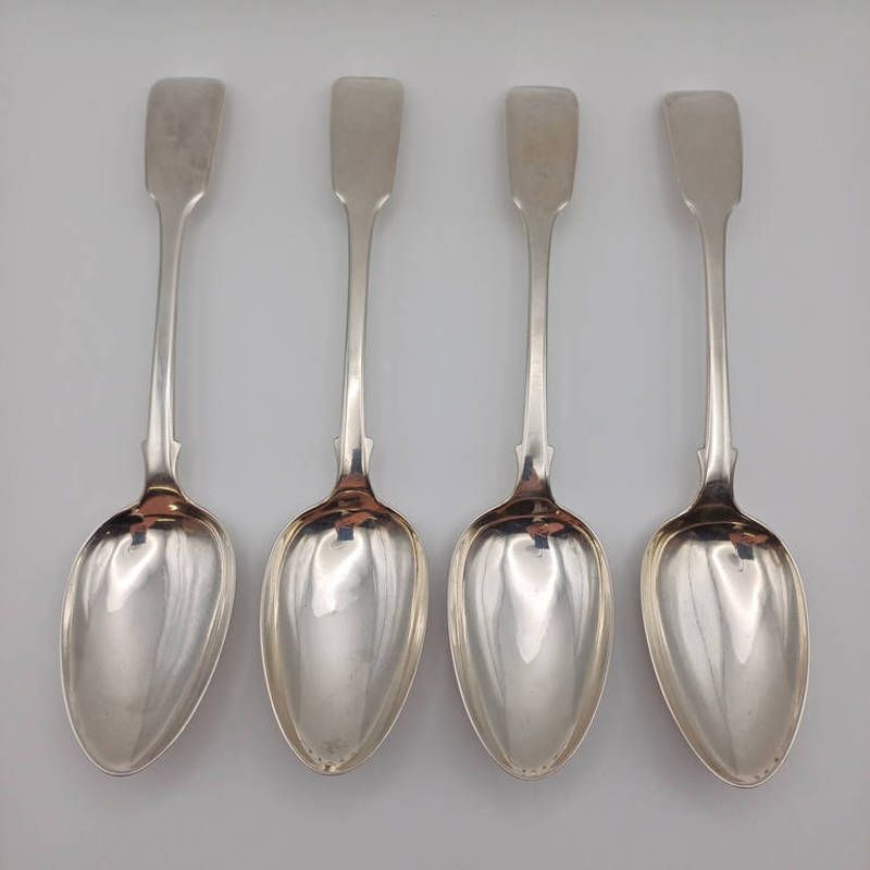 A set of 4 victorian silver fiddle pattern tablespoons by elizabeth eaton, london 1845, 268g
