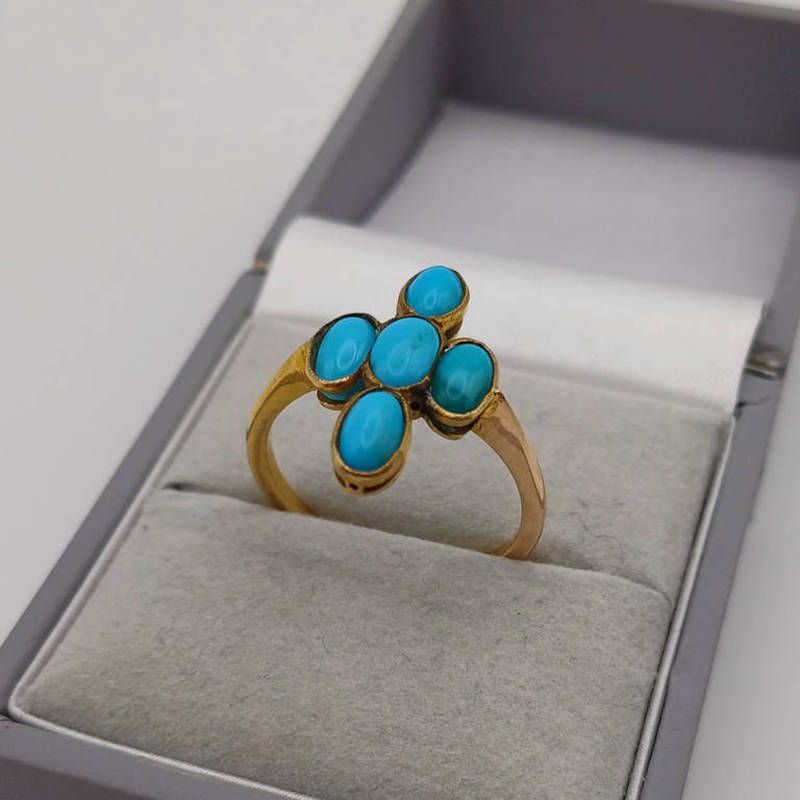 Early 20th century gold 4-stone turquoise cruciform design ring - ring size p, 2.8 g