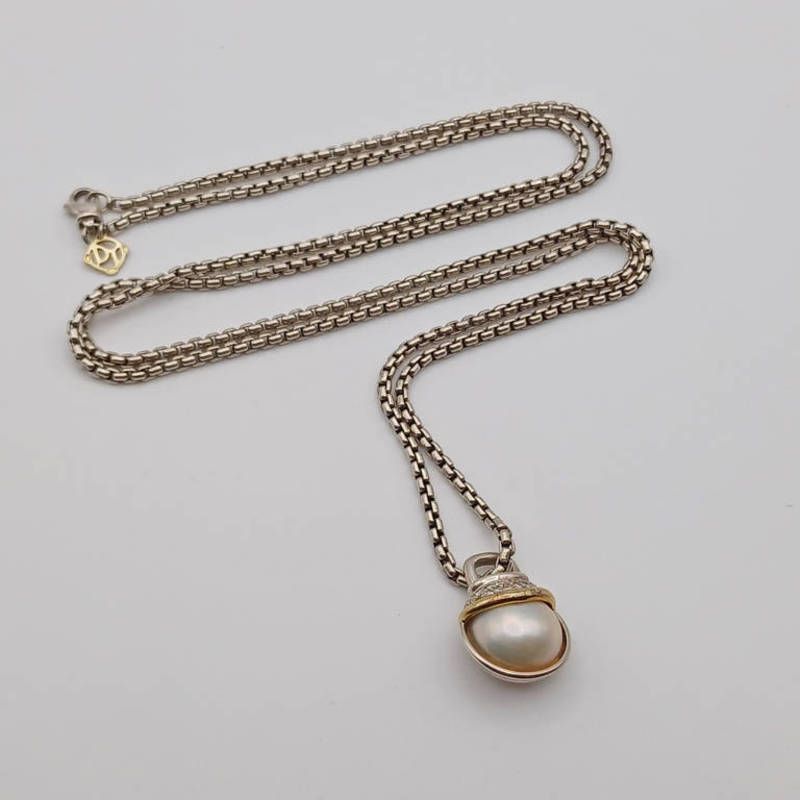 David yurman sterling silver pearl & diamond set pendant on a silver chain - 29.5 g total