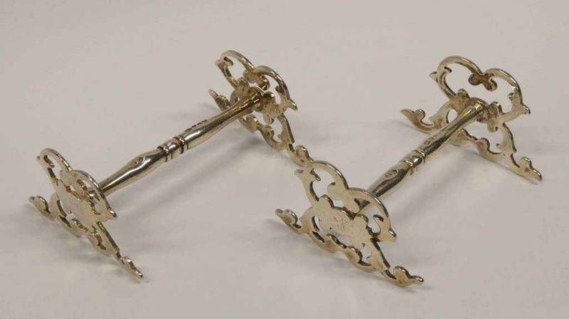 Pair of victorian silver knife rests by john evans ii london 1841 - 53g