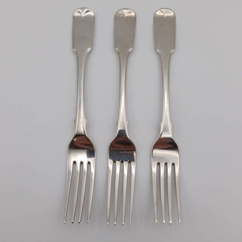 A set of 3 george iii silver fiddle pattern dessert forks by william welch ii, exeter 1816, 134g