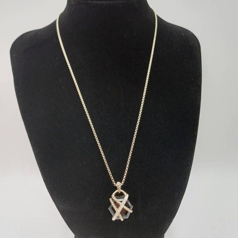 David yurman sterling silver black onyx & diamond cable wrap pendant necklace on a silver chain - 13.8 g total