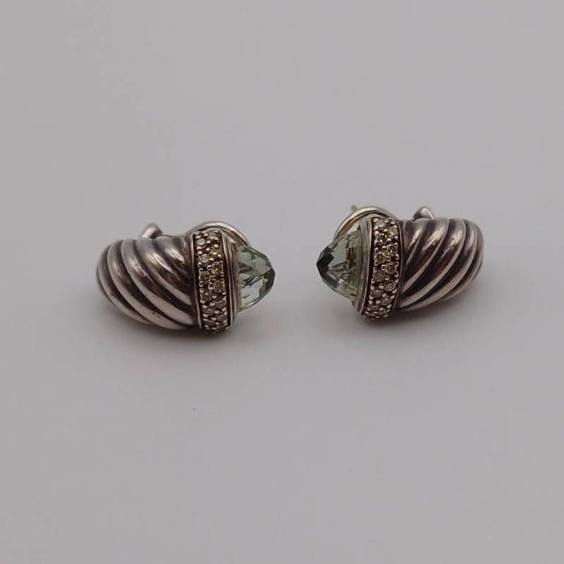 Pair david yurman sterling silver diamond & prasiolite waverly earrings - 2.2 cm long