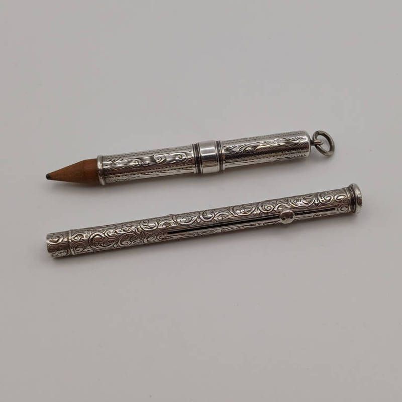 Silver pen & pencil, london 1879 by s mordan & co and one other silver pencil holder, chester 1912