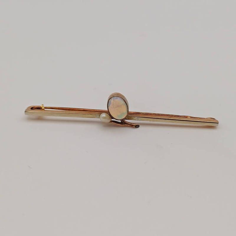 Opal & pearl set brooch marked 9ct & 18ct white, 2.6g