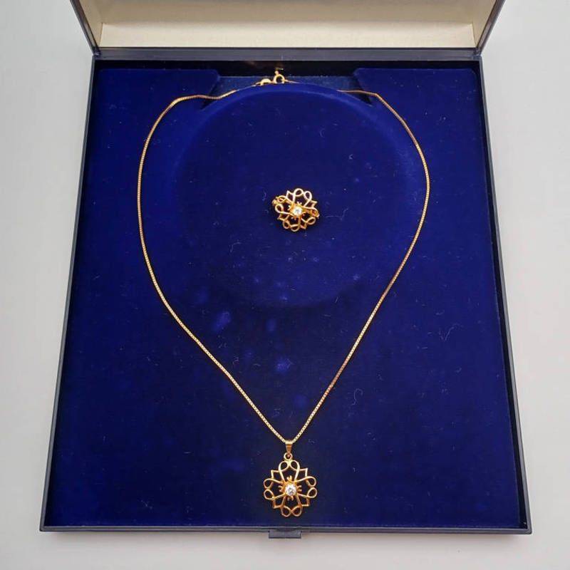 9ct gold gem set pendant on 9ct gold chain & 9ct gold brooch. total weight 5.2 grams, chain length 42 cm