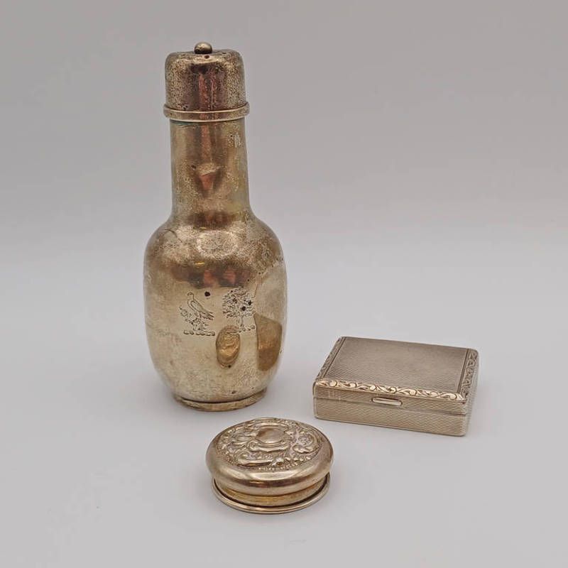 an american silver pepper by theodore b starr, a silver pill box marked sterling 925 & a lid, 102g