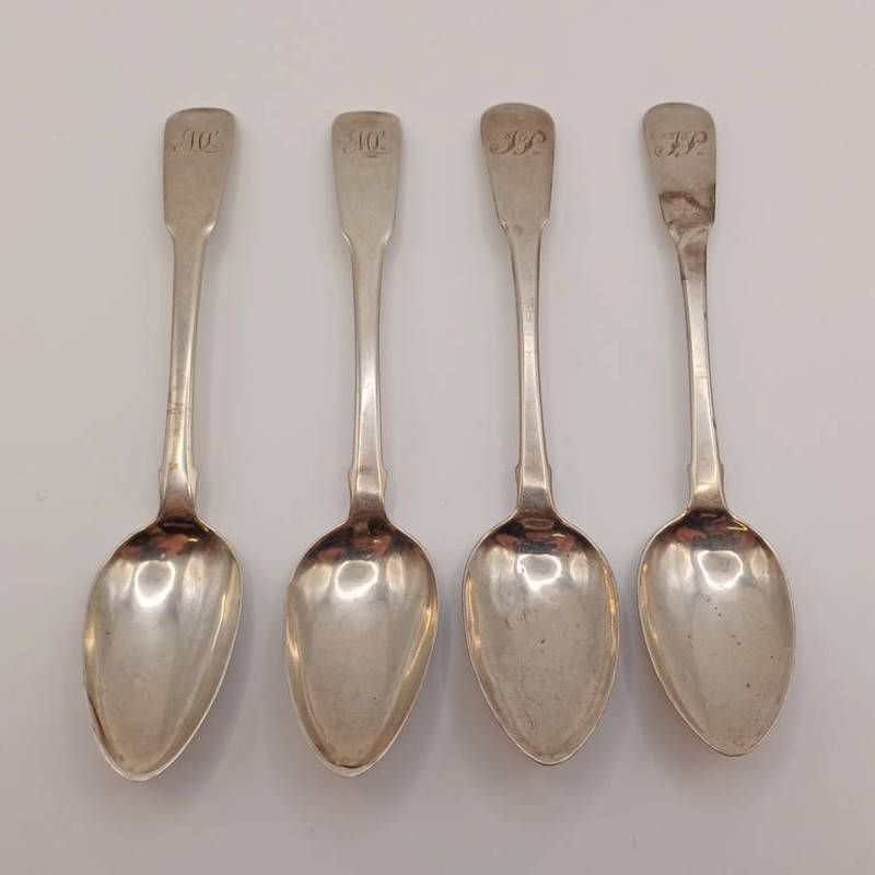4 dundee silver teaspoons, 2 by r n & by t s, 54g