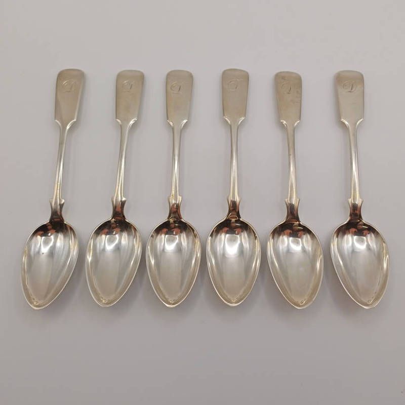 A set of 6 scottish silver fiddle pattern teaspoons by e & s, edinburgh 1840. 97 g