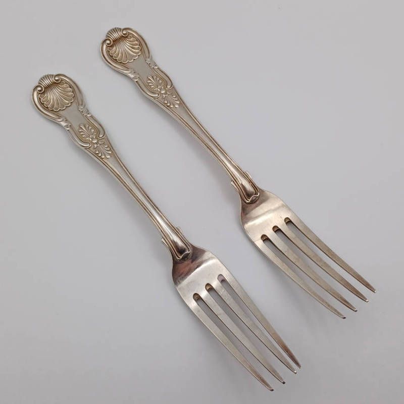 A pair of silver table forks with shell pattern by charles eley, london 1826, 204g