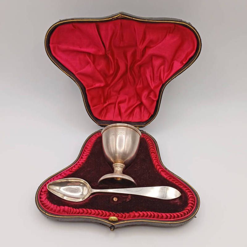 Hallmarked silver egg cup & teaspoon in fitted case. weight 49 grams