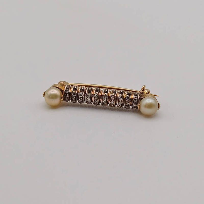 Late 19th century pearl & rose cut bar brooch, 3cm long, 2.2g
