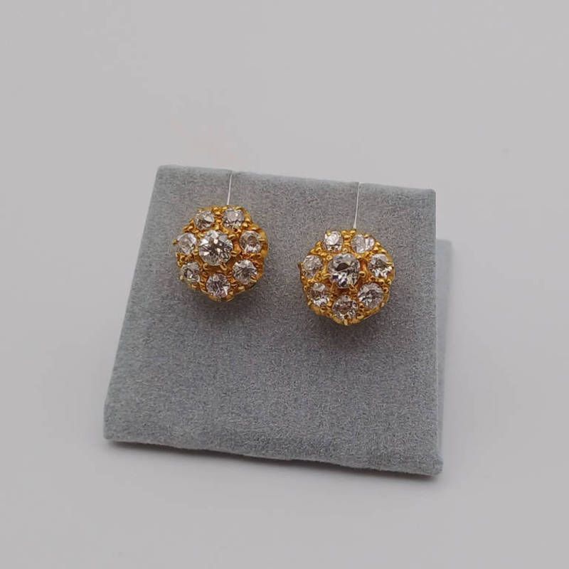 Pair of 9ct gold diamond cluster ear studs, the diamonds very approx 1.2 carats in total