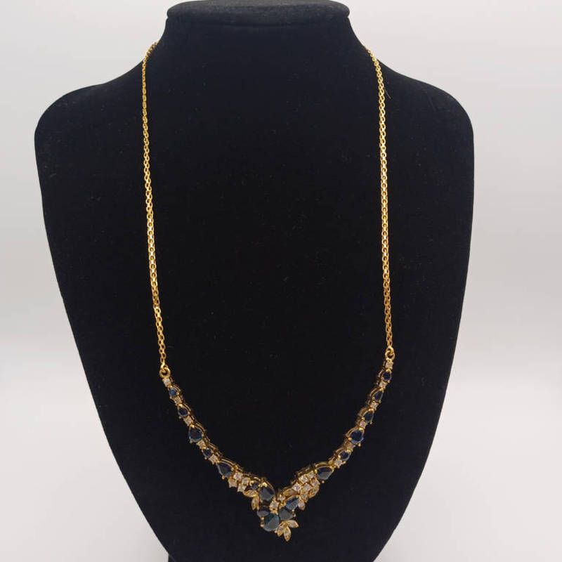 18k gold sapphire & diamond pendant necklace, set with pear shaped sapphires & brilliant cut diamonds - 48 cm long, 18.1 g