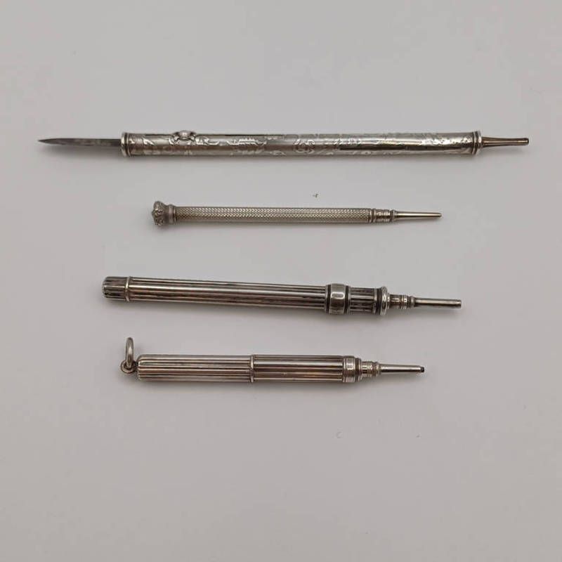 4 19th century retractable metal pencils