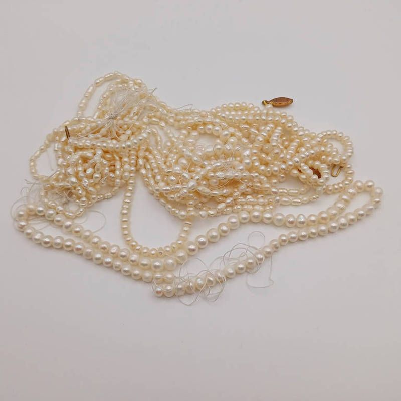 2 pearl necklaces with gilt clasp - 42 grams & large selection pearl necklaces with no clasps