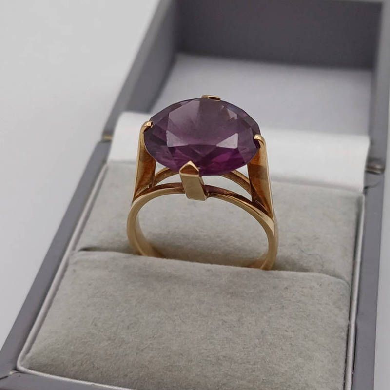 9ct gold synthetic sapphire ring - 5.9g, ring size o 1/2