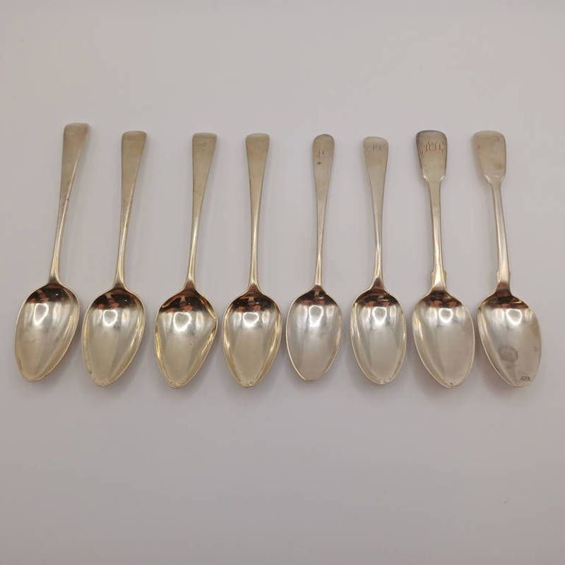 8 georgian silver teaspoons including a set of 4 by robert clark, london 1796. 122g