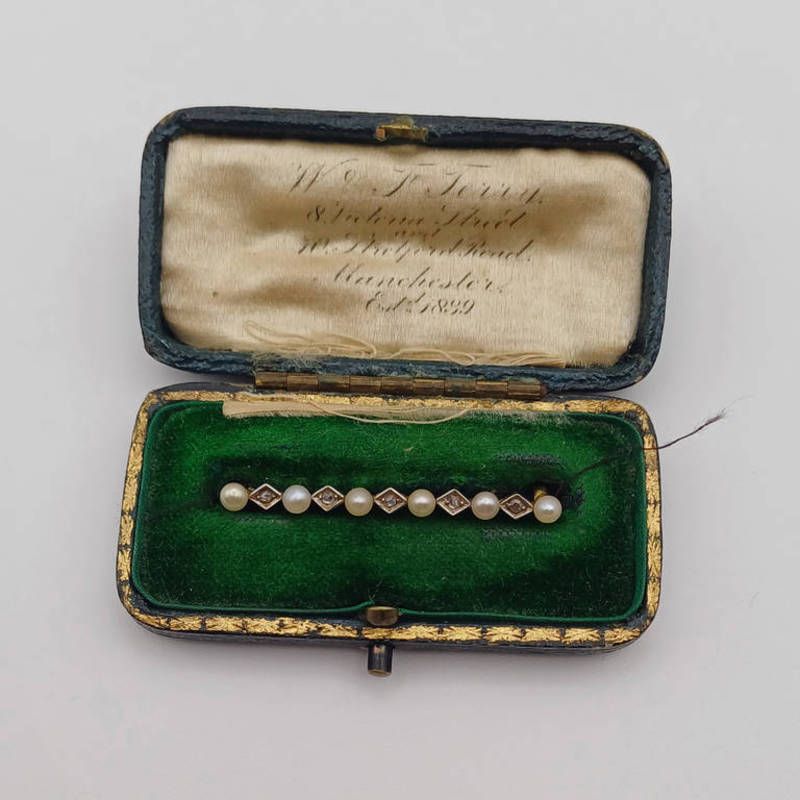 Early 20th century 15ct gold pearl & diamond set bar brooch - 4cm long
