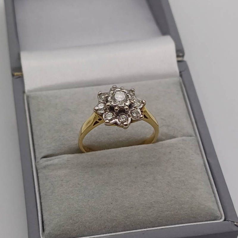 18ct gold diamond cluster ring - 3.5g, ring size l