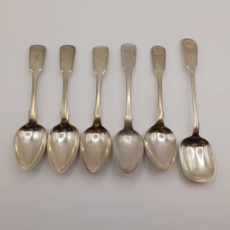 5 scottish silver teaspoons & 1 jam spoon to include a pair by je, edinburgh 1837. 108 g